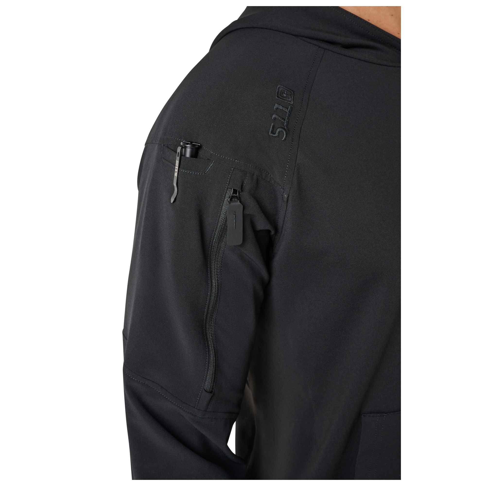 - Almacenamiento seguro diario : el bolsillo tipo canguro y los bolsillos con cremallera en las mangas mantienen lo esencial a mano.